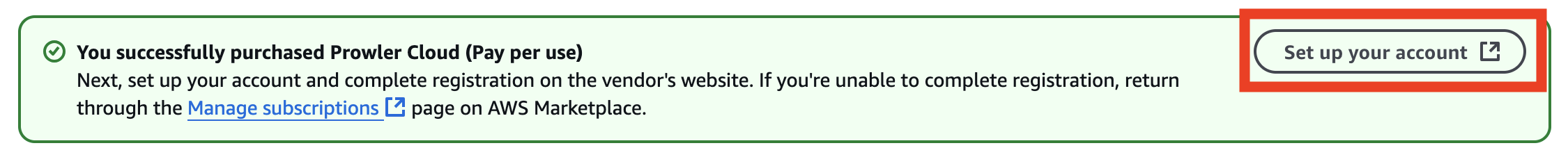 After you have subscribed to the Prowler Cloud product, you will need to set up your Prowler Cloud account:-
